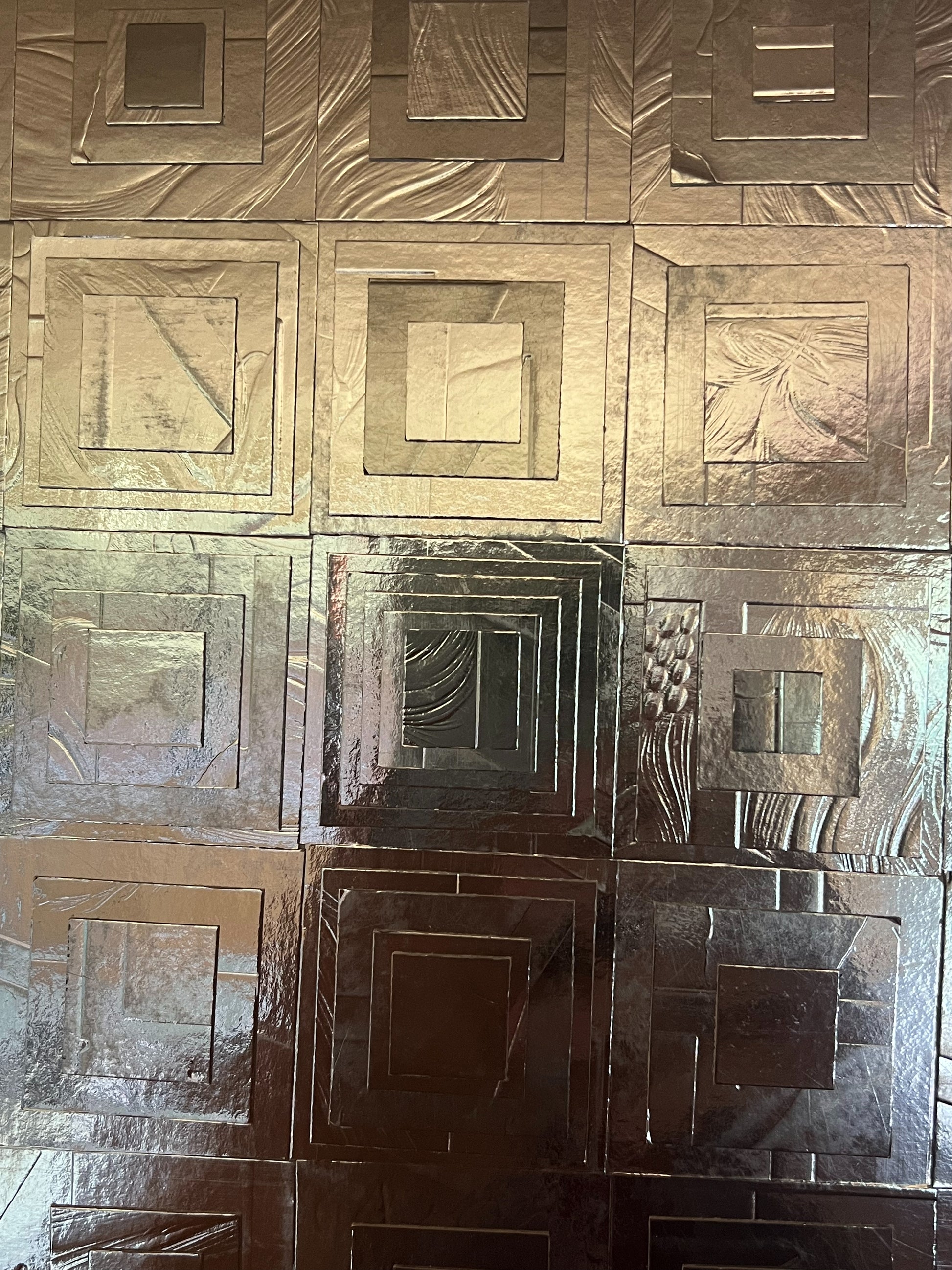Made from the iconic cover of KISS's vinyl album DOUBLE PLATINUM, this unique piece of art takes full advantage of the silver foil so closely identified with this album. Perfect for collectors, musicians, and fans of rock music, a bit of sonic cohesion is an eye-catching and nostalgic piece of memorabilia.