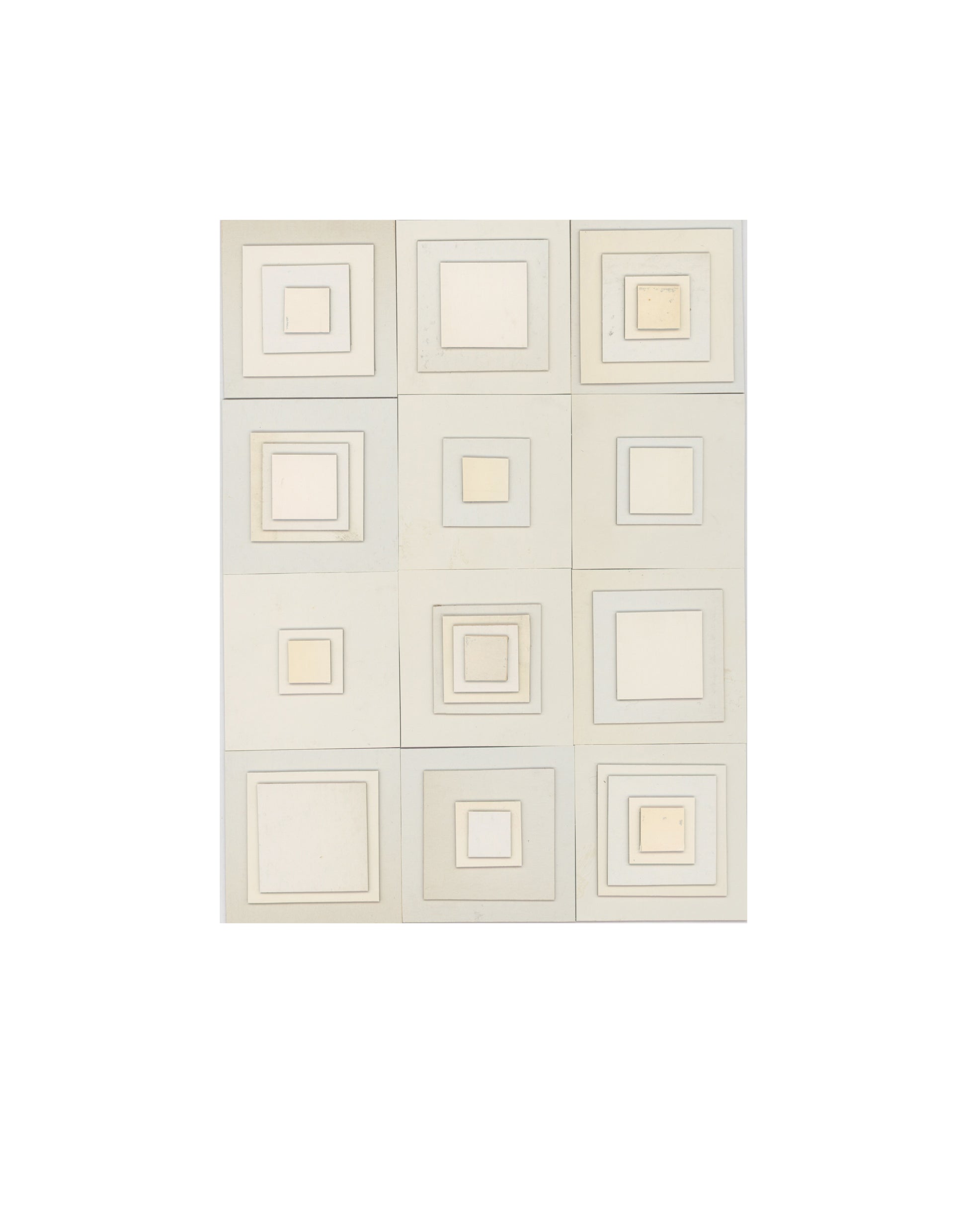 This unique piece of art was created using the iconic Beatles' White album. The gatefold album cover was hand cut into squares and layered with a mix of grittiness (outside cover) and cleanliness (inside cover). An historic piece that adds a touch of personal nostalgia to any room.