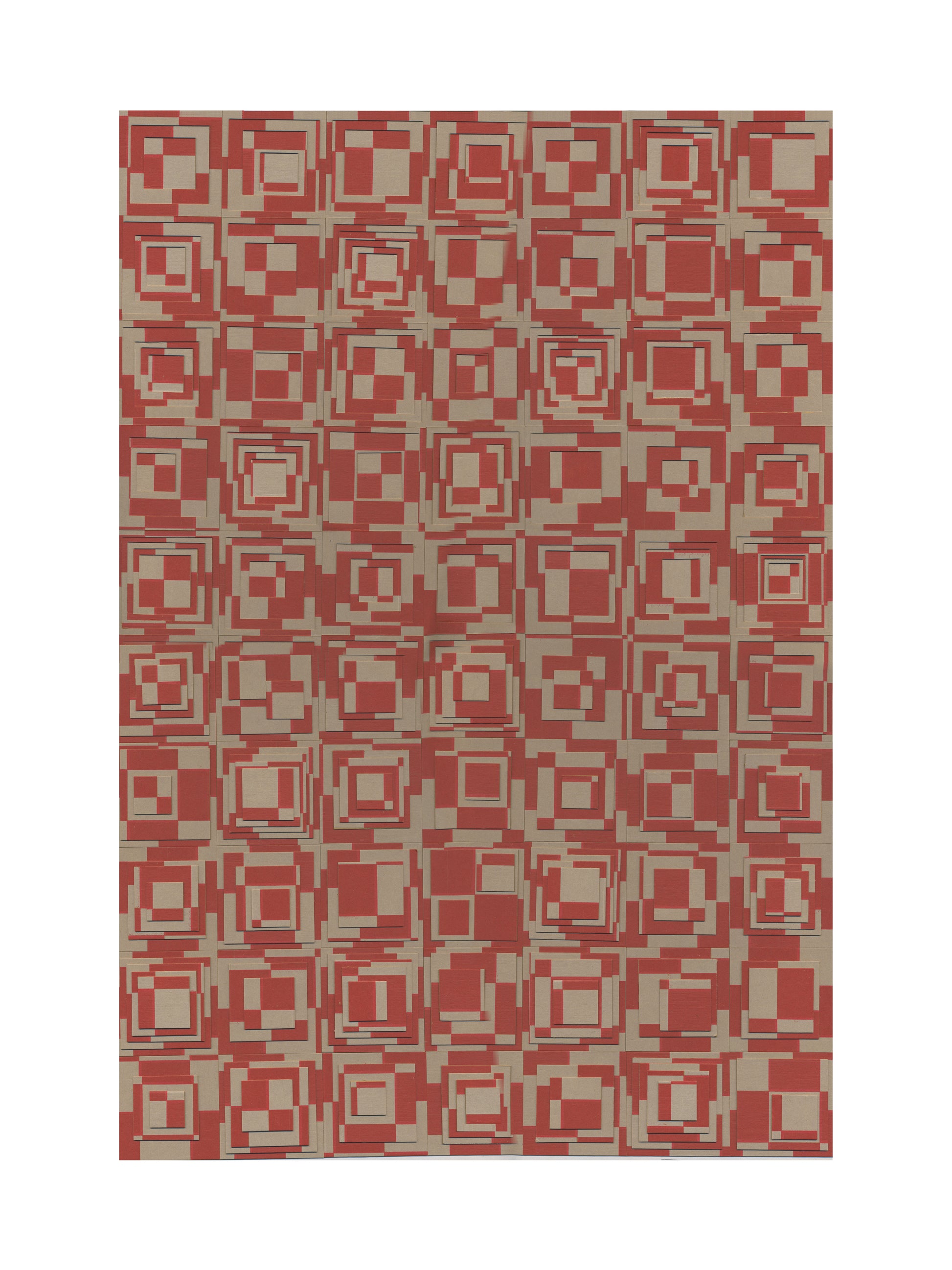 a free hot lunch (18x24 unframed) consists of 70 multi-square units which were hand cut from disposable cardboard lunch trays recovered at the University of Wisconsin hospital cafeteria.