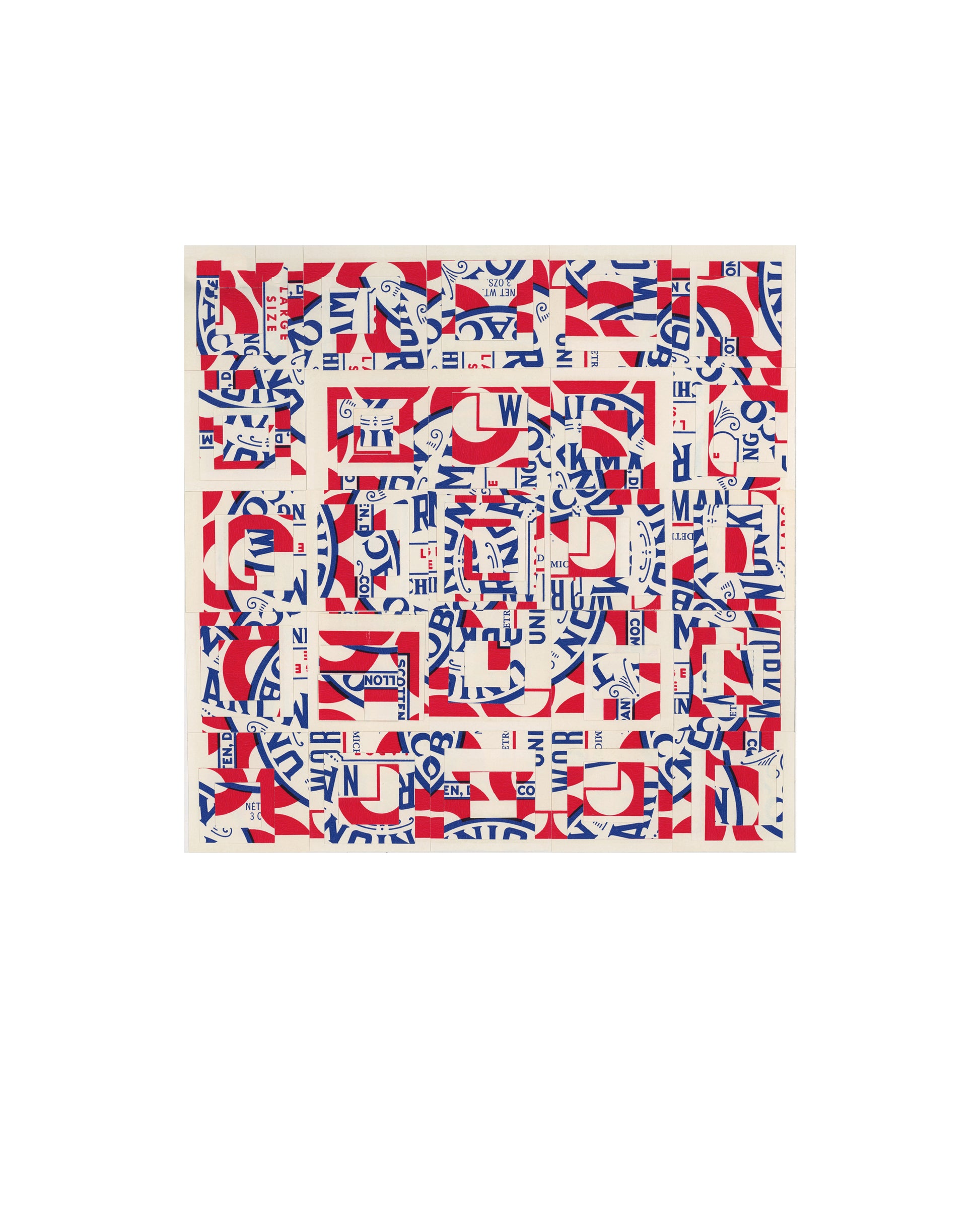 an attractive nuisance (16x20 unframed) is made from Workman Tobacco pouches, and hand cut into various sized squares