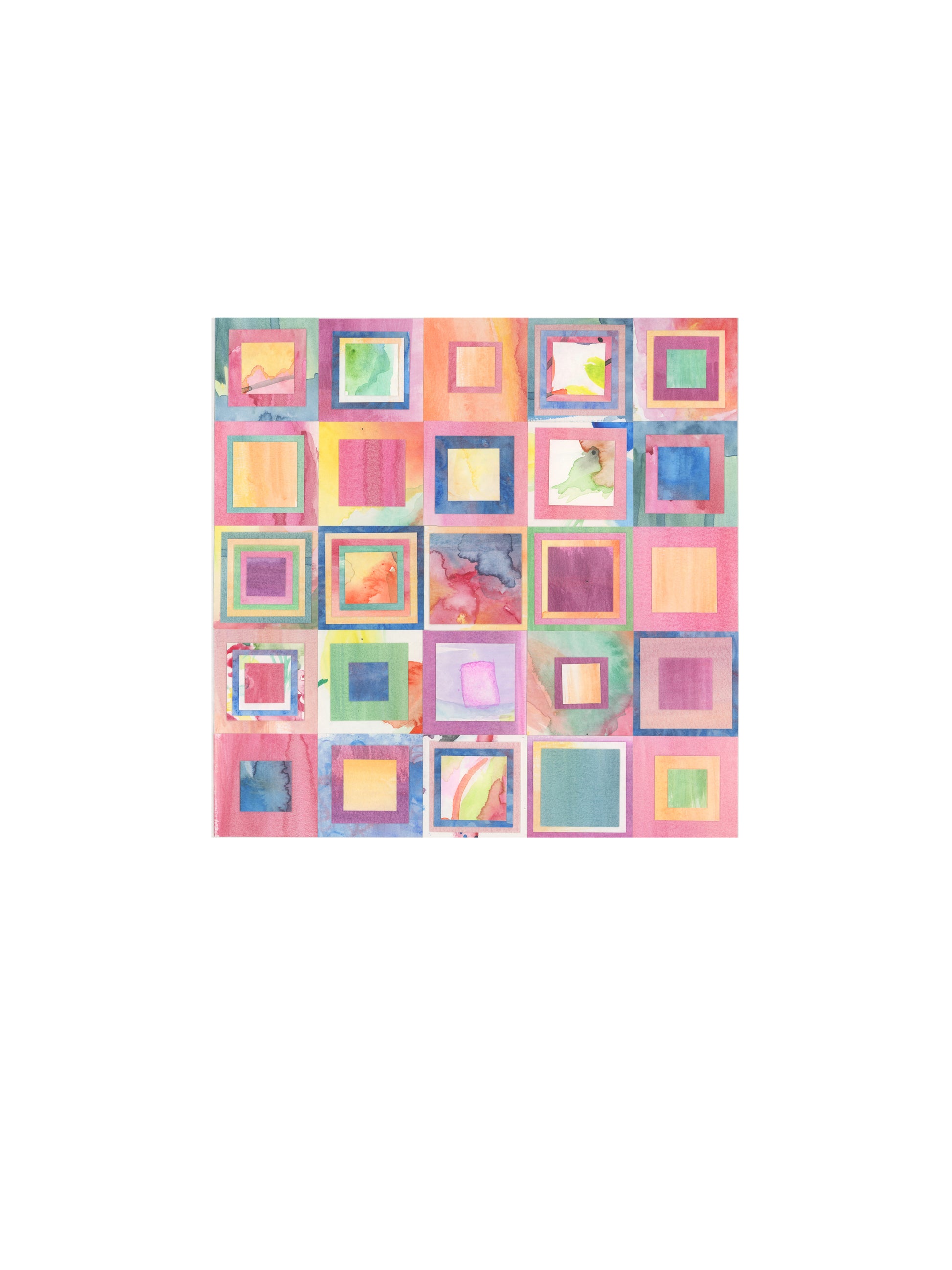 being there (18x24 unframed) was made from 25 hand cut squares  which were part of a water color painting.