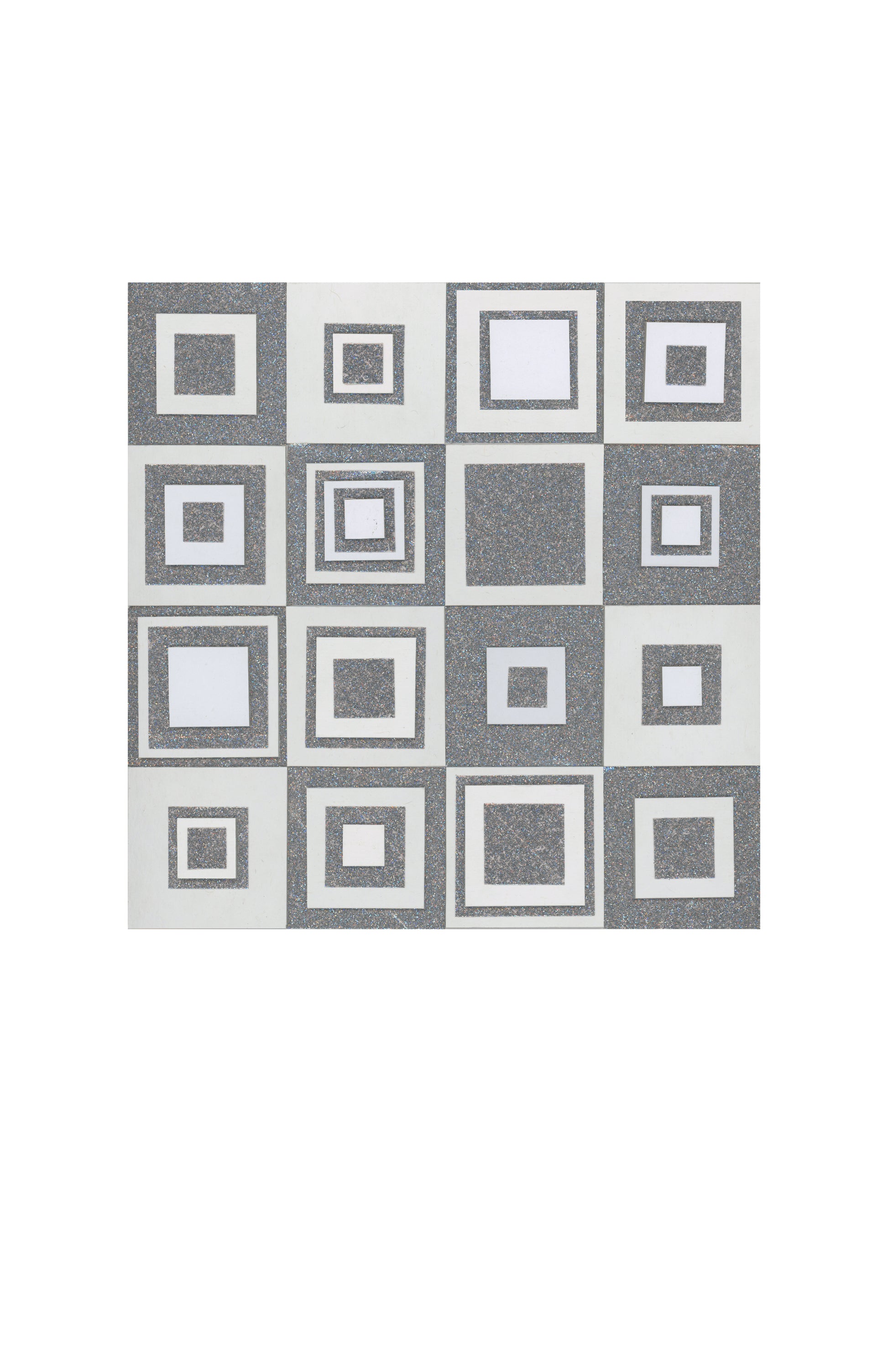 challenging my own assumptions (11x17 unframed) is composed of 16 hand cut squares of silver glitter paper on heavy white mat board