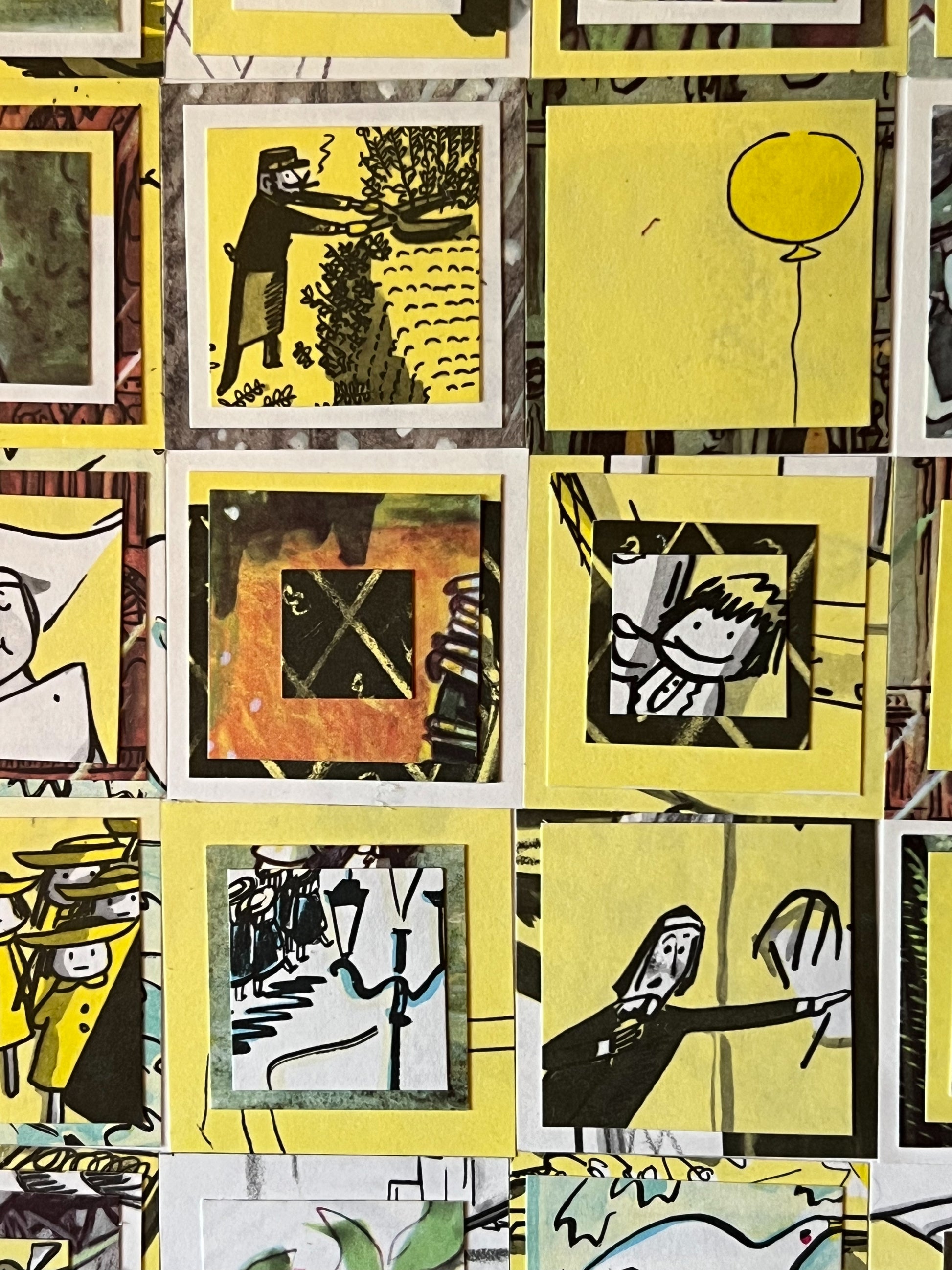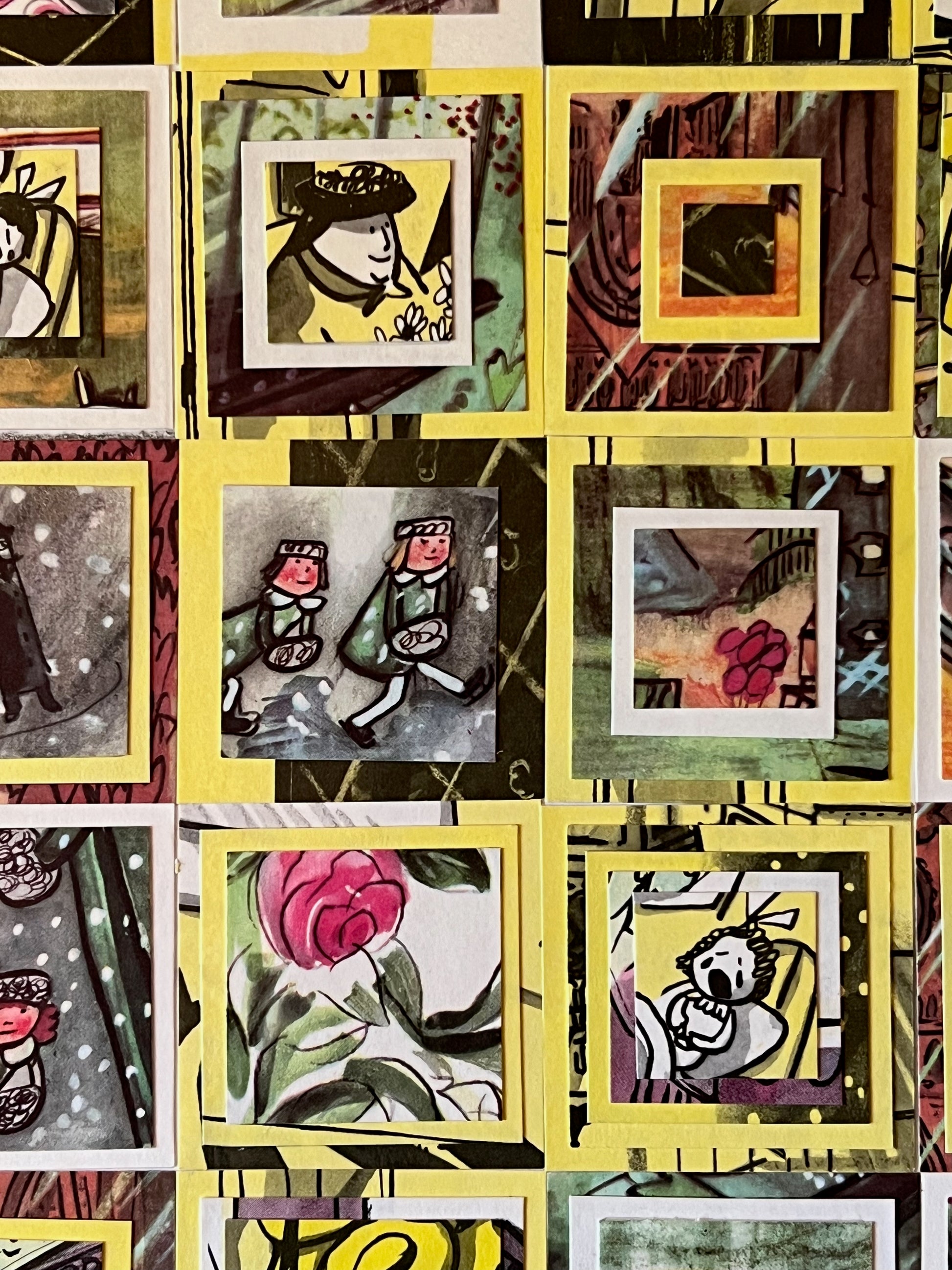 Experience the magic of childhood with Everything is an Adventure. This unique piece features squares hand cut from the beloved children's book, Madeline, showcasing the iconic yellow and black illustrations, with a little splash of Madeline's signature red hair. A vintage treasure to add to any collection.