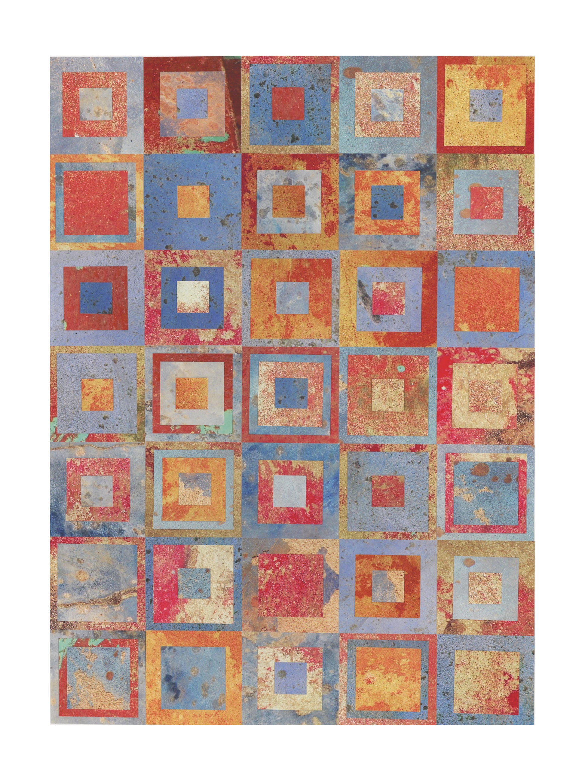imperfectly beautiful (18x24 unframed) is composed of 35 fascinating squares hand cut from photographs of a painted cement floor in a house I visited in Ghana, West Africa.