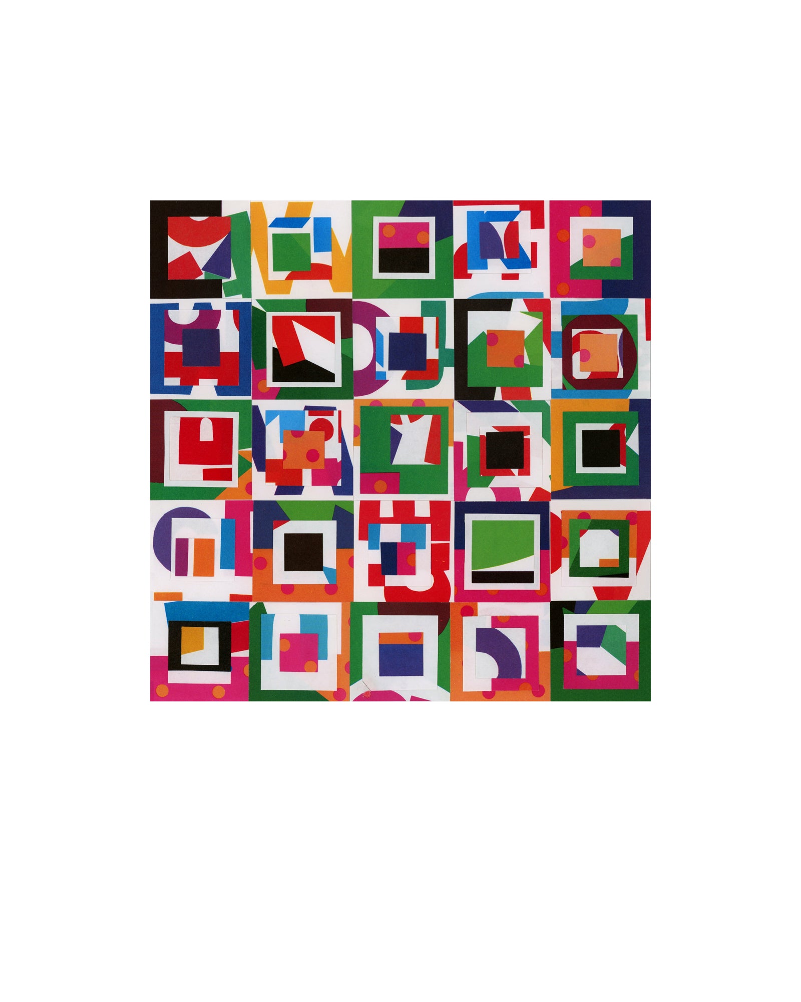 This uplifting piece, never give up, features an abstract design made from a discarded children's book, making it both inspirational and environmentally friendly. This bright and colorful collection of hand cut squares serves as a constant reminder to stay positive and persevere.