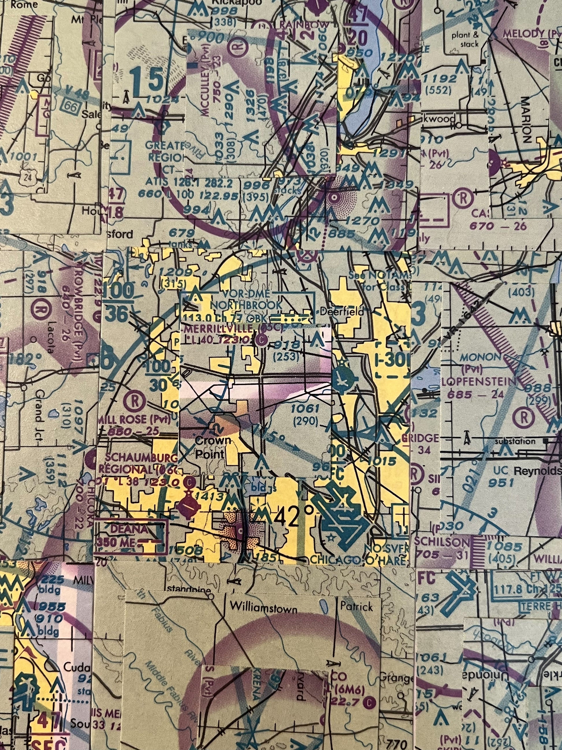 Get lost in style with the New World Order - Chicago Aeronautical map! Featuring hand-cut squares in green and purple accents, this map will have you going in circles and questioning reality. Perfect for those who love to get lost and find new adventures.