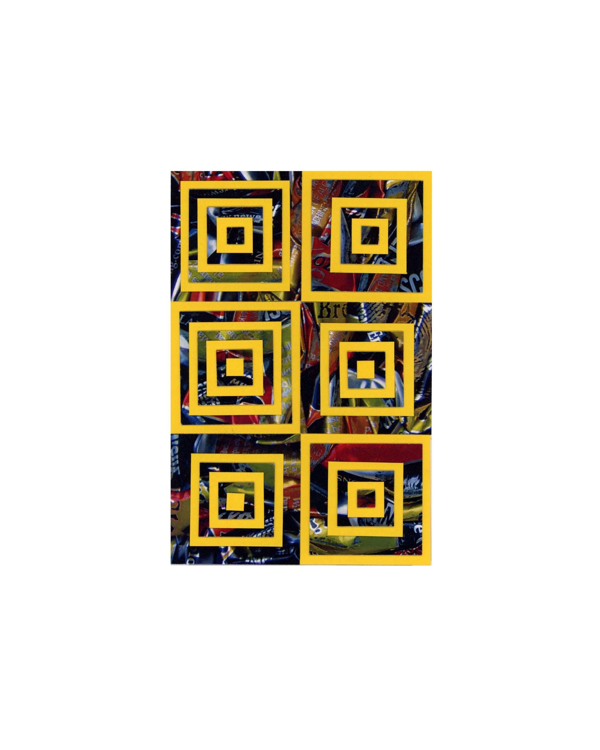 Experience the unique blend of art and sustainability with crisp and clean, a cut paper assemblage made made from photographs of recycled Moon Man beer cans and bright yellow paper. Perfect for adding a touch of creativity to any space while doing your part for the environment. Share the experience with loved ones by spending time together creating a greener world.