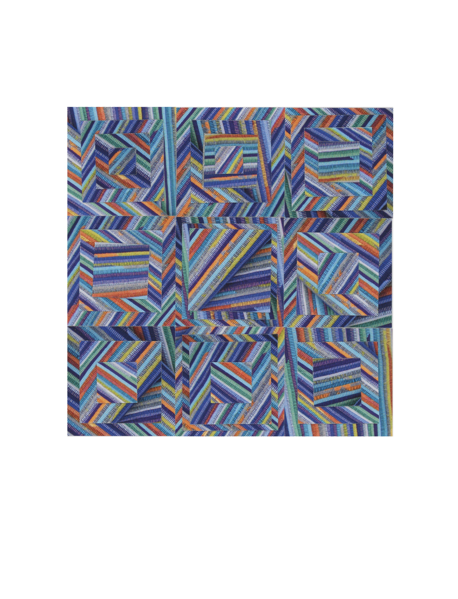 textured...like life! is made up of nine hand cut squares from advertising postcards used by a Wisconsin rug maker