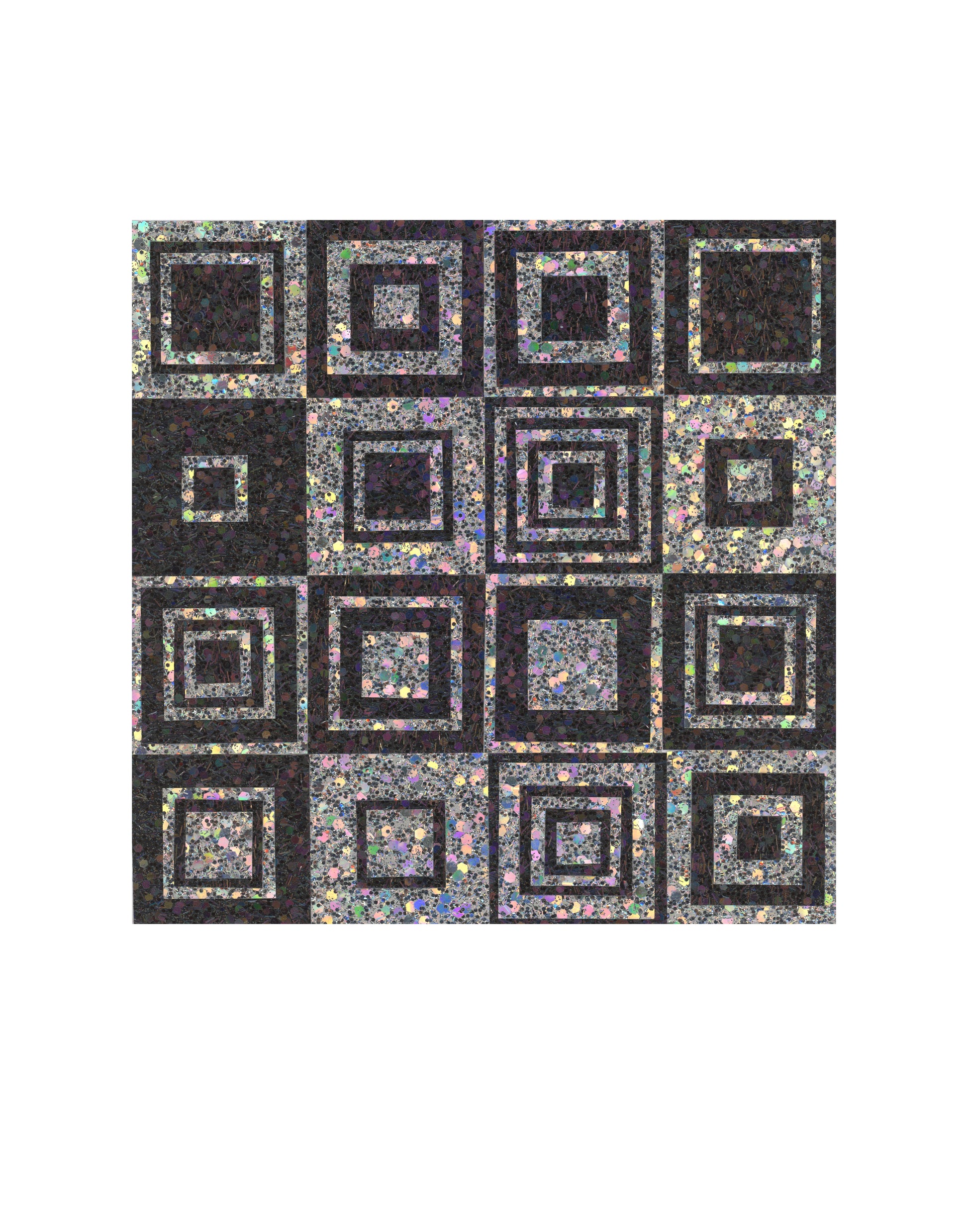 Transform your space with this unique piece of art made from 16 squares of black and silver glitter. transforming darkness into light was carefully crafted to create a stunning contrast of darkness and light. Elevate your decor and bring a touch of elegance to any room with this one-of-a-kind piece.